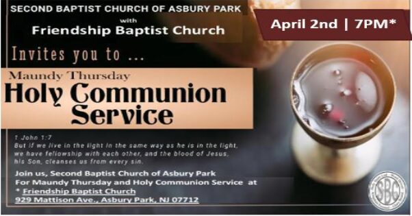 Second Baptist Church of Asbury Park with …Friendship Missionary Baptist Church for … … … Maundy Thursday Holy Communion Service